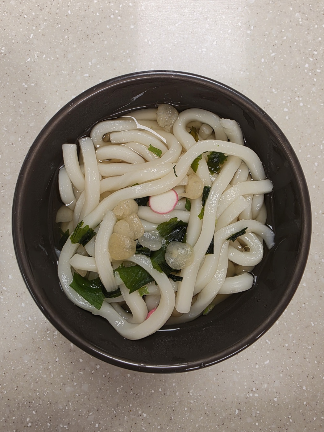 - 따뜻하게 데운 우동 그릇에 물기를 뺀 쫄깃한 사누끼 우동 면을 담습니다.